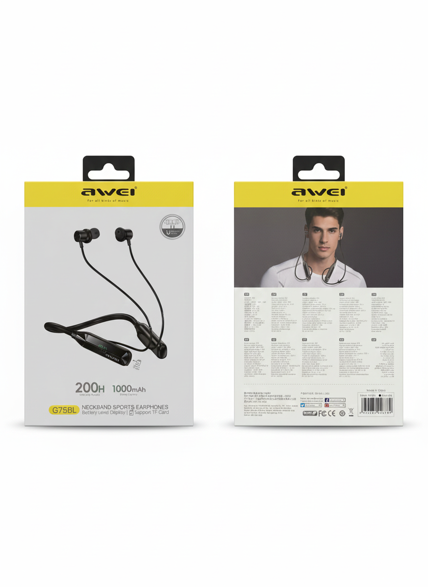 Be the first to review “Awei G75BL 200Hour With Display Neckband Sports Earphones” Cancel reply