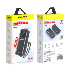 Looking for a reliable and powerful power bank to keep your devices charged all day? The Awei P107K 20000mAh 22.5W Fast Charging Digital Display Power Bank is the perfect solution. With a massive 20000mAh battery capacity, advanced 22.5W fast charging technology, and a clear digital display, this power bank ensures you never run out of power whether you’re at home, work, or on the go.
