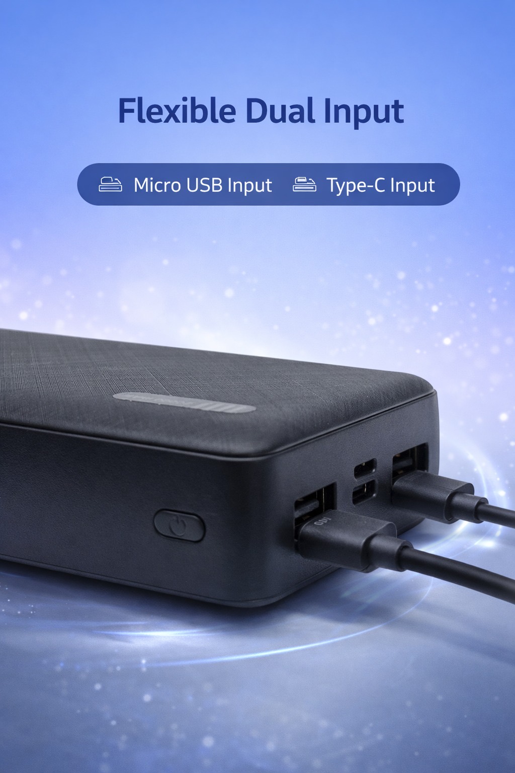 For convenient recharging, the power bank includes Type-C and Micro USB input ports, giving you flexible charging options with commonly available cables. Built with advanced cell protection technology, the Thunder-6 ensures safe electricity use by protecting against overcharging, overheating, over-discharging, and short circuits. 🛡️
