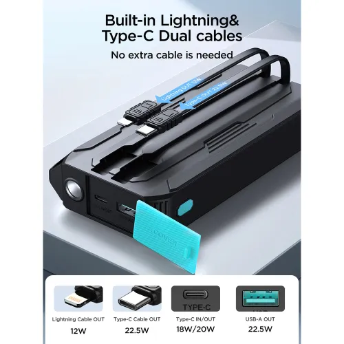- Flashlight, Built-in Lightning & Type-C Dual Cables